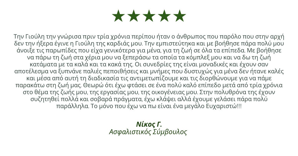Χρησιμοποιώντας τη μέθοδο της Ιδιοσυγκρασικής Συμβουλευτικής και μέσω μιας εξατομικευμένης πελατοκεντρικής προσέγγισης είμαστε αφοσιωμένοι στην υποστήριξη των πελατών μας στο ταξίδι τους προς μία βελτιωμένη υγεία και ψυχική ανθεκτικότητα.