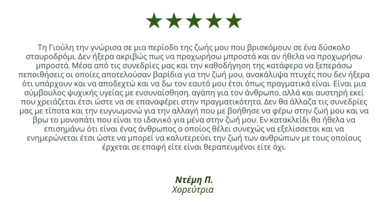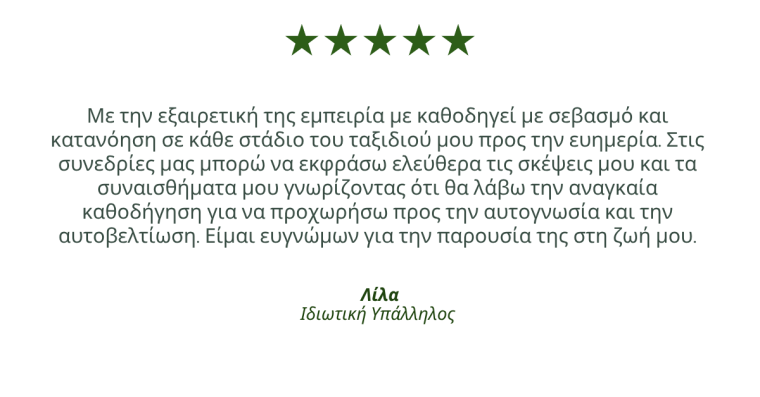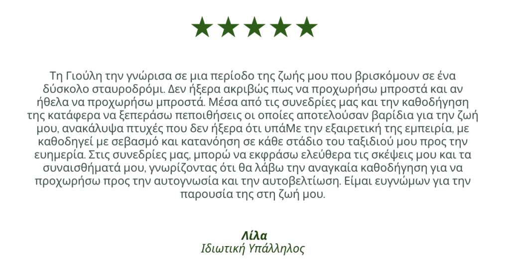 Ανεξαρτήτως αν παλεύετε με ζητήματα σχέσεων, αναζητάτε καθοδήγηση ώστε να διαχειριστείτε αλλαγές στη ζωή σας ή απλώς αναζητάτε προσωπική ανάπτυξη, είμαστε εδώ για να σας βοηθήσουμε να κατανοήσετε τον εαυτό σας και τον τρόπο που αντιδράτε, να αναπτύξετε δεξιότητες αντιμετώπισης καταστάσεων και να προωθήσετε θετικές αλλαγές στη ζωή σας.